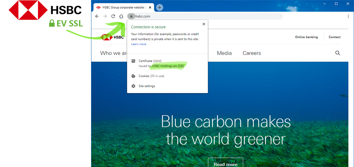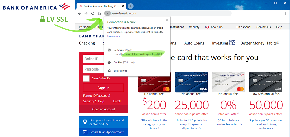 Το πιστοποιητικό SSL EV χρησιμοποιείται επίσης από τράπεζες σε