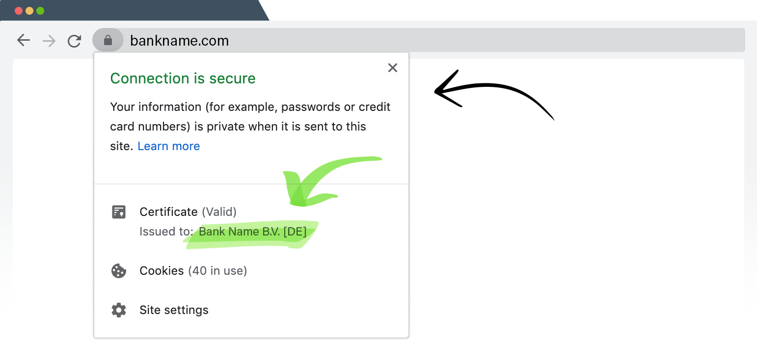 Η πράσινη γραμμή διευθύνσεων είναι συνώνυμο της ασφάλειας. Οι πελάτες νιώθουν μεγαλύτερη αυτοπεποίθηση επειδή βρίσκονται στην τοποθεσία web σας - βλέπουν το όνομα της τράπεζας